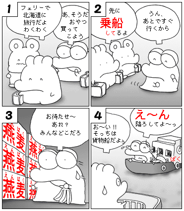 貨物船の資料集めに古本屋に行ったんですけど、貨物船の雑誌ってないですねぇ。戦艦とか帆船とかボートの雑誌はあったけど……。客船の載ってる雑誌を買ったんですけど、4コマ目を見る限り、不要でしたね。